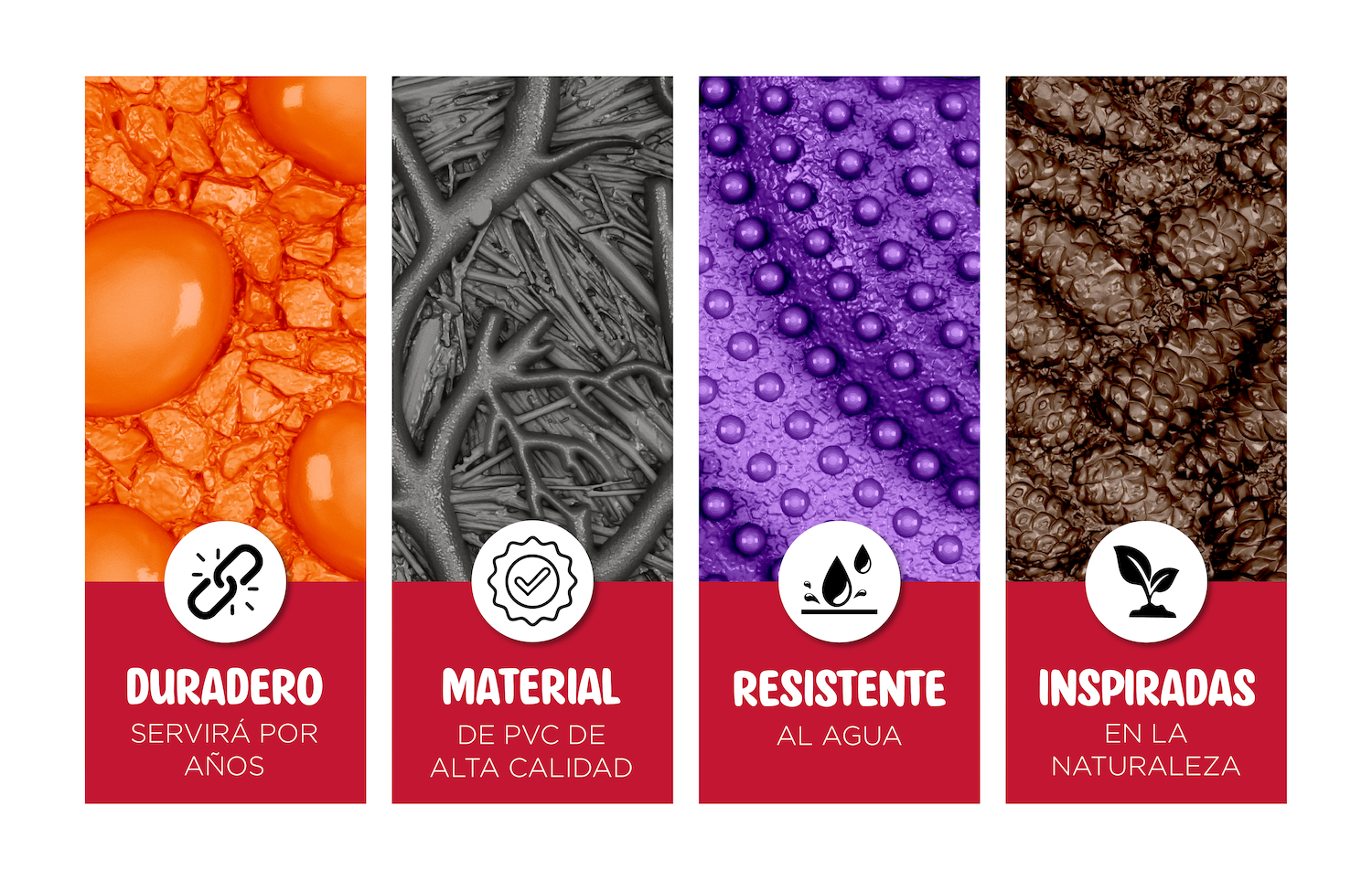 Estimula Ayuda a que aprendan a controlar su cuerpo, mejorar la coordinación y desarrollar confianza, las diferentes texturas despiertan la curiosidad e interés, aportando enriquecimiento ambiental y bienestar emocional.
