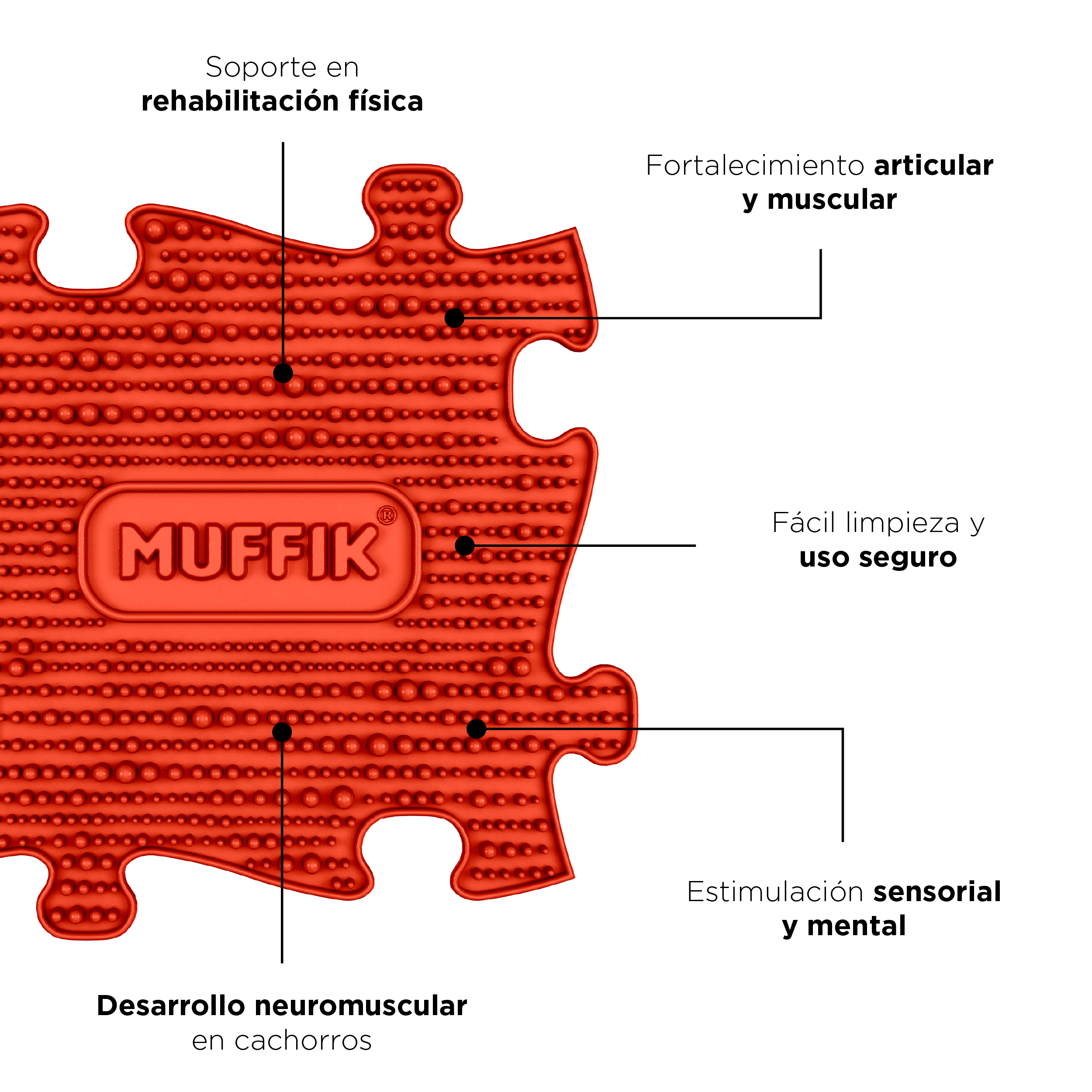Los tapetes sensoriales MUFFIK están diseñados para ofrecer una experiencia única de estimulación, equilibrio y fortalecimiento que beneficia a cachorros, gatos, perros adultos y senior.